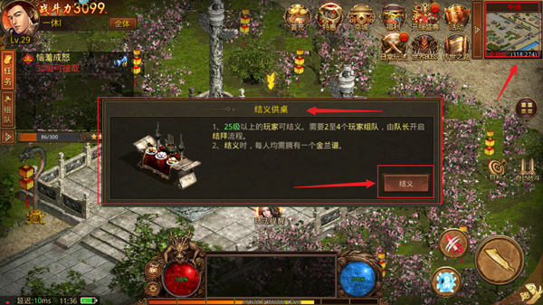 2、组队前往中州(315.277)结义供桌处,由队长开启结义