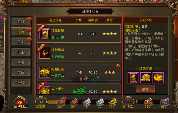 三、通过日常玩法,快速刷取经验