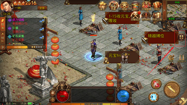 游戏里有超多玩法,比如摆摊卖东西、组队刷副本、和其他玩家PK啥的,还有自由交易系统,完全不用担心元宝被吃或者装备不能送兄弟。特别是千人同屏 PK 的感觉很刺激,随时都能和兄弟一起打团战,特别带感。
