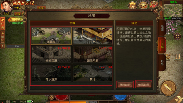 2、选择主城后,点击你想去的主城,有两种前往方式:寻路前往,传送前往
