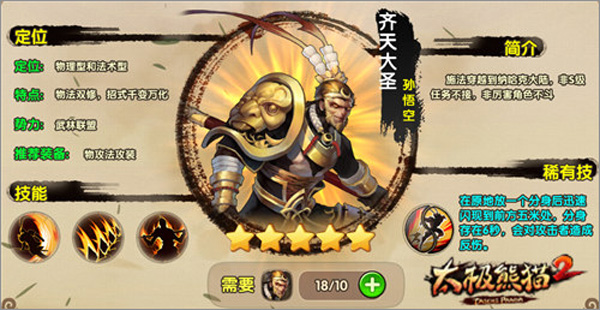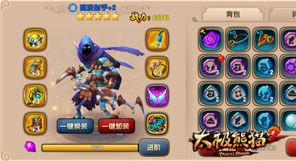 太极熊猫2游戏中丰富的英雄以及多角色切换设定无疑是大大提高了游戏的可玩性。游戏中每天世界boss活动也会随机指定一个英雄提升500%的伤害,从一定程度上鼓励大家体验不同英雄的乐趣。然而,普通玩家的资源很有限,主将装备在强化和精炼等级上远远高于其它副将,且不同的主将会有不同的装备搭配,尤其是在物理系和法系英雄之间切换。