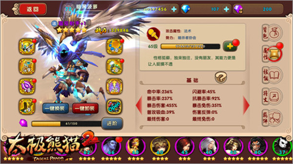 装备搭配的原则很简单,在保障1、2技能减40%CD的情况下,追求输出最大化。副将选择一排两大肉控:双子、酒仙;二排选择游乐师和汉克,或者用自然之女代替游乐师。一排副将除了提供稀有技,还要利用控制提供最大限度的牵制作用,因此主将多出来的资源都用在他们身上。二排副将主要作用是提供稀有技,不用在他们身上花费太多资源。另外,甜心、凤凰虽然进阶很高,但不适合做瘟疫的副将。