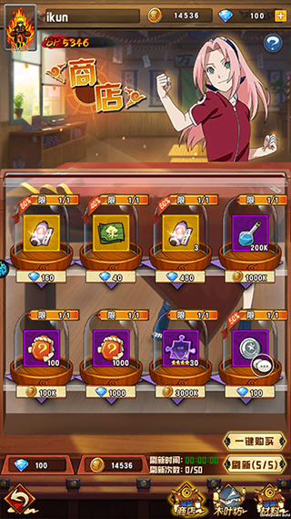 4、 主页面商店可以购买心仪的道具,每天凌晨0点更新商店内容哦,也可以自行刷新哦。
