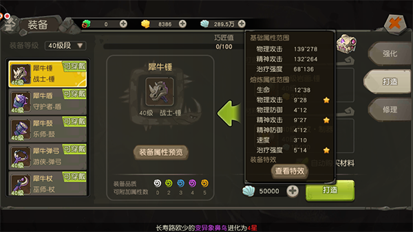 玩家还可以通过打造得到更加强的武器,打造需要打造书和材料,打造成功会获得特别的武器属性。