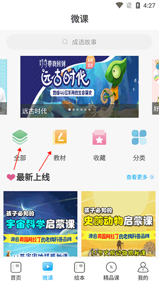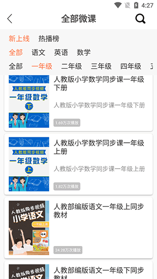 4、如果选择了全部微课,就可以随便学习小学阶段所有科目课程的微课了。