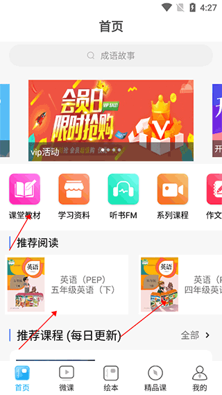 2、选择好之后会来到点读的界面,这个时候可以看到有非常多版本的教材,人教版也包括在内;