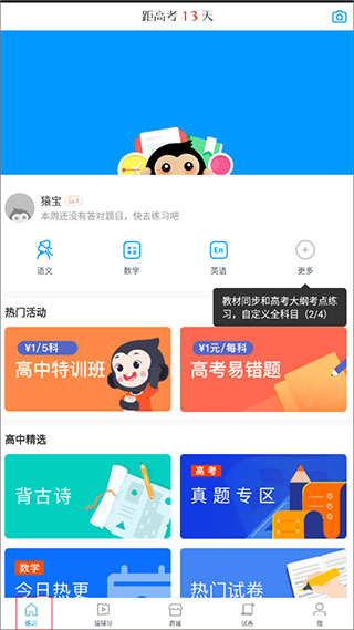 界面设计也很贴心,有练习、辅导、试卷等多个功能区,满足不同需求。比如“猿辅导”可以让你听专业课程,“试卷”专区则提供了历年真题和模拟题,帮助你熟悉高考题型。此外,软件还会自动整理错题本,按考点分类,方便复习巩固。