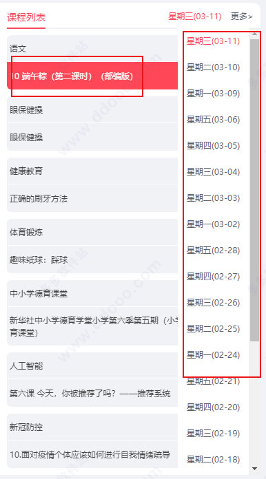 3、如果需要回看,可以点播,用户可以在右侧找到课程列表;
