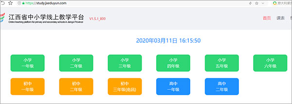 1、打开赣教云江西省中小学线上教学平台,可以选择小学至高中各个年级的直播课;