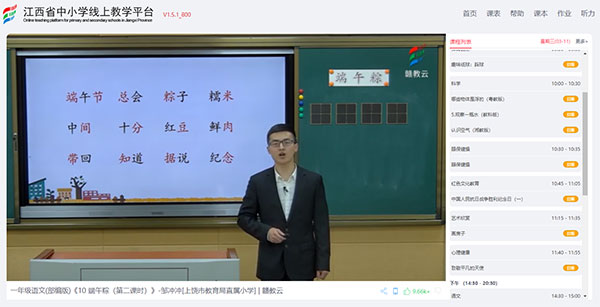 进入“赣教云”平台,点击“江西省中小学线上教学平台,根据年级、日期、课程(有版本区分的按版本选择)选择收看。(互联网盒子、电脑、平板、手机都可以)