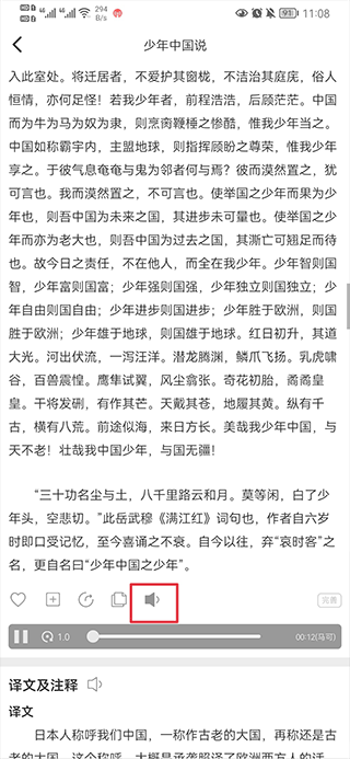 一、怎么调节倍速1、打开古文岛app,在文章中点击喇叭