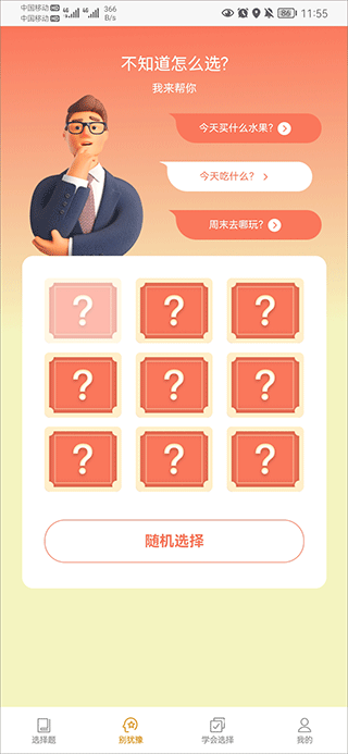 我最喜欢的是它的随机选择功能,每次不知道吃什么、去哪玩的时候,用这个真的方便极了。还有性格测试,简单又有趣,几分钟就能知道自己是什么类型的人。操作起来也很简单,手指一划就能完成答题,成就感十足!