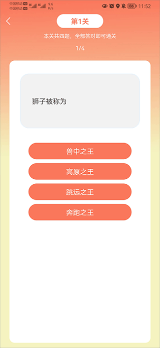 2、进入后根据问题选择下方正确的答案,全部答对后即可通关进入下一关