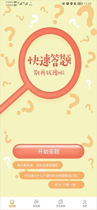 1、开始答题,只选C是一款快速答题闯关模式的软件。
