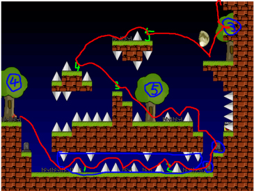以难度出名的IWBTG! 总共有4种难度: 中等(Medium),难(Hard),超难(Very Hard),和不可能(Impossible[注:看起来是不可能通关,实际上这是给高玩和TAS专门准备的)。 随著玩家选择的难度提升,游戏里的存档点也会跟著减少,到impossible只剩下一个只会出现1/30秒的存档点;玩家必须在那1/30秒内成功的用子弹射到存档点才行(仅限guy)。