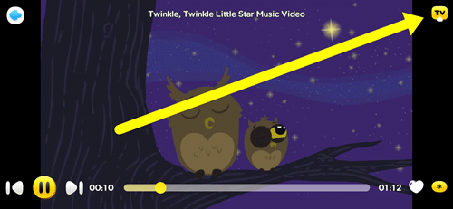 2、然后在视频开始正常播放之后,我们单机一下画面,软件就会呼出菜单栏,这个时候我们可以看到右上角有一个TV文字的小电视,点击这个电视。