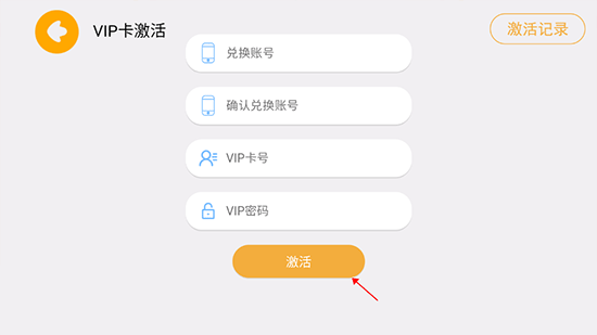 3、接着输入兑换账号、VIP卡号密码,点击“激活”即可进行激活。