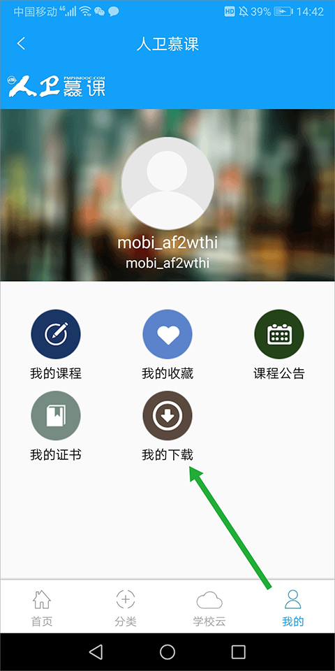 用户下载的视频一般都是通过人卫app中的人卫慕课功能进行下载,下载过后直接进入人卫慕课页面中点击底部【我的】,在打开的新页面中点击【我的下载】
