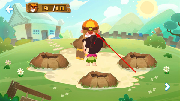 3、第一章识字目标是前、后、左、右四种,用户需要根据提示,控制里面的人物打地鼠,通过这种方式学习;