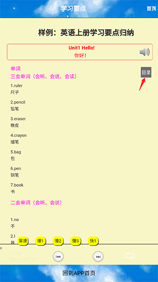4、点击进入后可以看到有着大量学习要点归纳,下方还可以选择播放速度