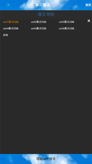 6、可以看到多个单元的要点都可以选择学习,十分方便