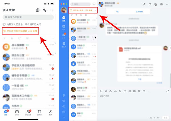 在直播与视频会议课堂中需要往返切换直播课堂同“学在浙大”的课程界面,便于学生参与签到、抢答、提问、随堂测验、讨论、教学反馈等活动