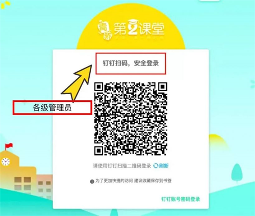 第二步:点击“登录-管理员登录”,打开手机钉钉右上角“扫一扫”登录