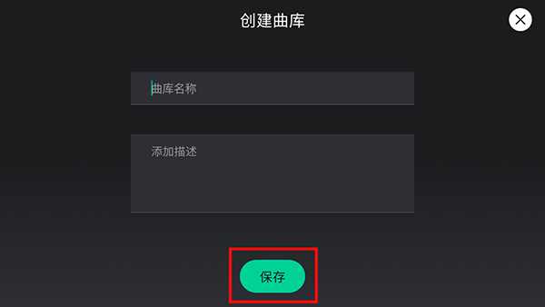 5、然后输入曲库名称和描述,点击【保存】即可完成个人曲库创建。