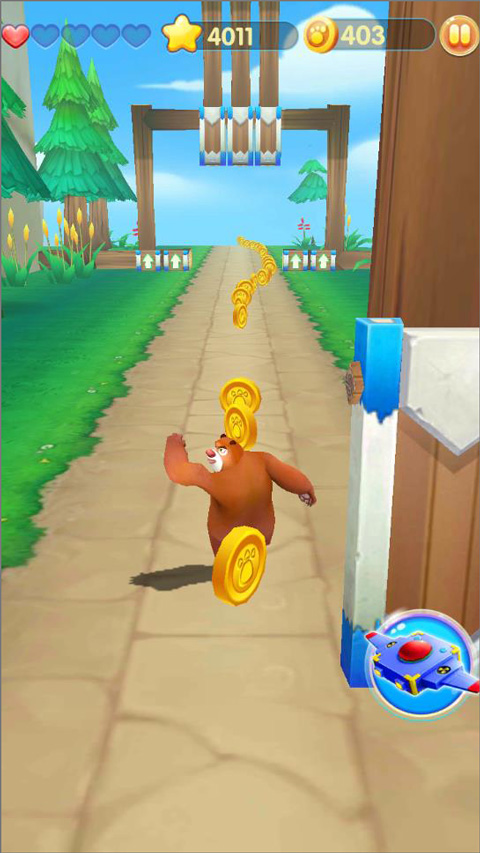 游戏特色机关玩法,各种新奇的关卡障碍,鱼群、巨石、齿轮、火球让你惊奇不已!各种各样的障碍物层出不穷,让你徜徉在熊出没的冒险世界!