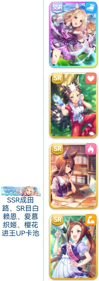 支援卡:成田路、目白雷恩、爱慕织姬、樱花进王