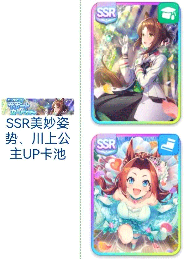 美妙姿势算是最好用的智卡之一,建议小伙伴抽一下。川上公主育成跑竞技场的马娘可以用用,不用特意抽。