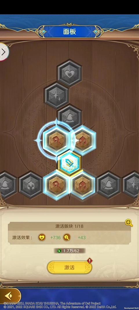 战力不够,Buff来凑。勇者们可以通过主界面左下角的悠久之间进入版图界面,激活面板上的板块就可以提升攻击力、防御力、血量等属性啦~