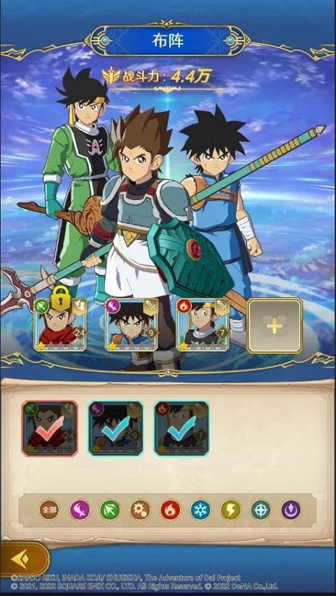 冒险途中可靠的同伴是必不可少的,除了勇者自己之外,队伍中还可以配置三名伙伴,勇者们通过主界面的勇者按钮即可看见布阵按钮,进入布阵界面啦~