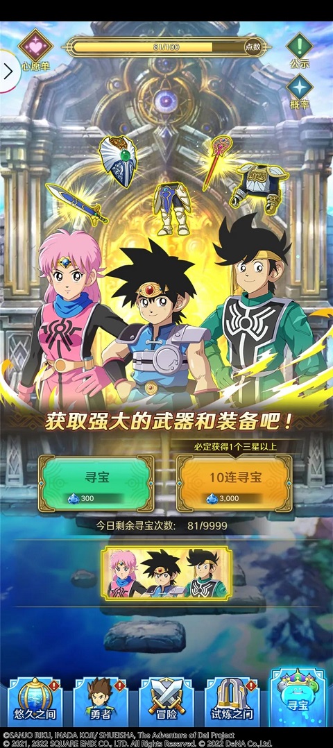 本加入了寻宝玩法,勇者们可以通过主界面右下角的寻宝按钮进入寻宝界面。