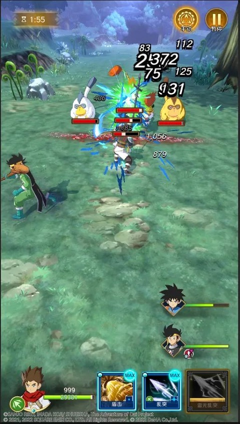 勇者们还可以通过战斗界面右上角的按钮来决定手动战斗还是自动战斗,还可以调整战斗速度和暂停战斗哦~