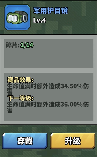 然后官配的藏品小帅认为应该是这个军用护目镜。其藏品效果为满生命值时能够额外造成高额伤害。非常适配无伤流打法。