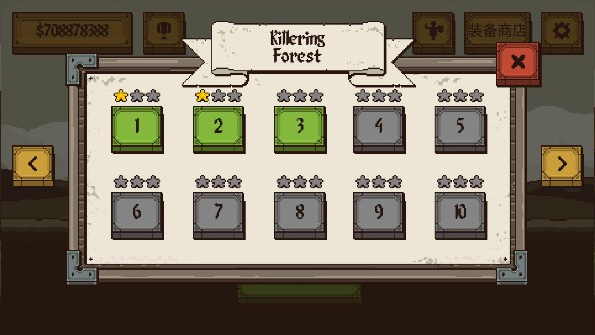 3、点击右上角的暂停键,可重新开始或前往装备商店购买装备;