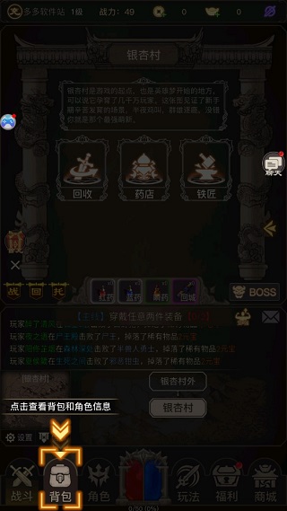 当你将前期系统赠送的装备和技能穿戴完毕后,点击战斗界面可前往!