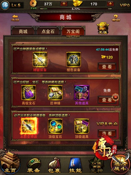 消耗点4:商城的万宝阁不仅有免费的装备道具可以买,其中众多消耗元宝的道具也比商城直接购买要划算很多,所以勇士务必要多留意这里刷新出来的东西。
