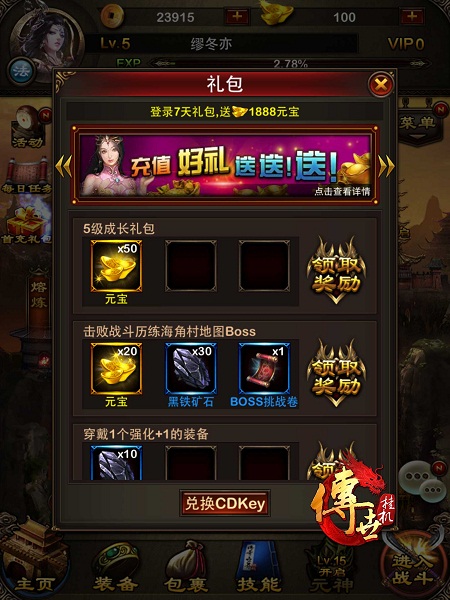 3、技能自由组合,炫酷特效眼花缭乱,战斗经验每天上不封顶,助你成为全服最强!