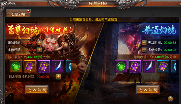 3、幻境分为至尊幻境和普通幻境,至尊幻境分身收益为普通幻境的3倍