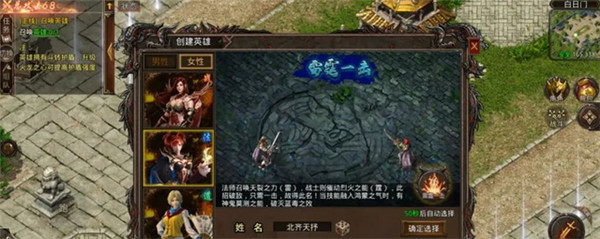 英雄可以起名和选择性别,拥有该职业的技能