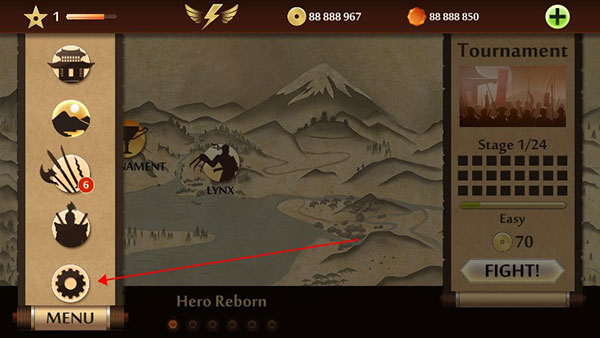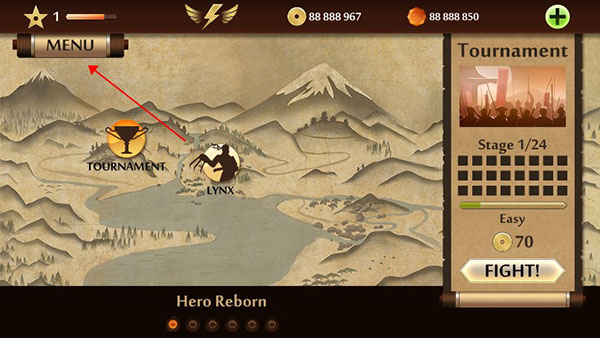 1、首先在多多软件站也就是本网站下载安装该游戏的特别版,进入游戏主页面之后,点击MENU菜单选项。
