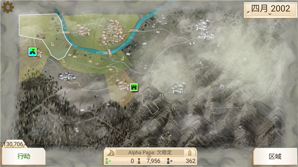 进入叛乱公司中文版最新版游戏之后,你的军队需要驻扎在当地并且不断壮大实力,操作菜单分为概览、平民、政府和军队四个选择,你需要获得资金保证政府运作,修建水电、医疗、交通、通讯等基础设施提高经济发展水平和当地人支持率,同时要预防腐败以免祸起萧墙。