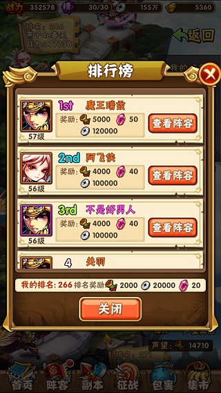 3、在竞技场挑战胜利后,如果被挑战者排名高于挑战者时,双方会互换排名。