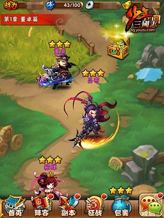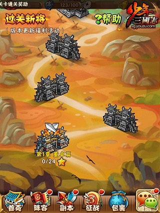 《少年三国志》“武将化神”资料片已经震撼上线,四大玩法、多重福利,隆重宣告2.0时代的开启!而过关斩将更是带广大少年畅享福利,每个关卡都有资源奖励,通关整个章节还有神秘宝箱,数量庞大、种类多样绝对不容小觑哦!那么,怎么得到呢?过关斩将的入口在《少年三国志》首页,打开游戏即可看到: