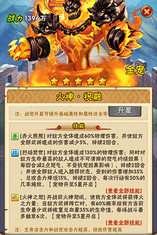 一、怒气灼烧战宠-火神祝融1、火神·祝融 护佑/神炼: