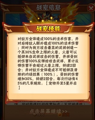 给全体上奇袭御甲的状态,护盾期间免爆,格挡率提升20%。又一个神技能,张辽一号位的话,立即套盾,加上宠物150%的盾,打造一个完美的保护壳。再加上免爆格挡等因素,也算无坚不摧了!
