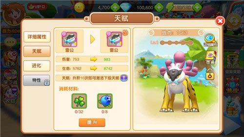 精灵主要可以通过升级,天赋,特性,装备,技能和进化的途径进行增强战斗力!