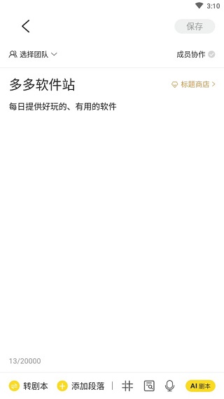 比如你今天写了一条剧本,想要让团队协作拍摄或者参考,你只需上传到团队剧本,那么你团队当中所有的人都能操作。